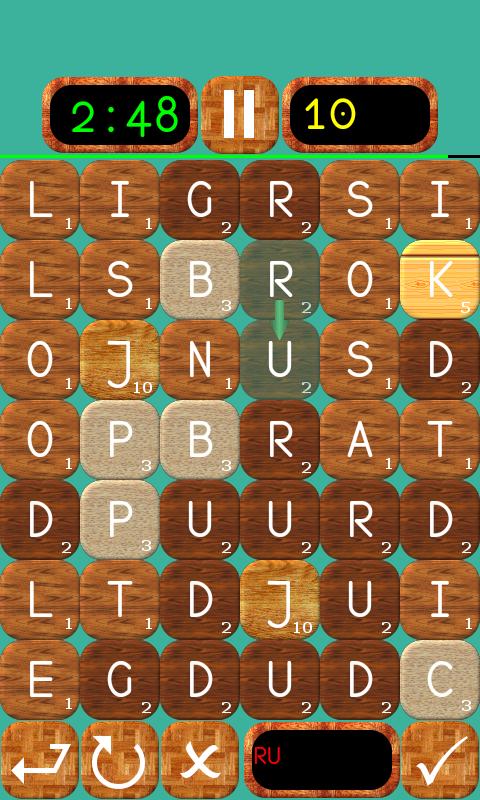 The goal of the game is to build the maximum number of words from any adjoining letters, including diagonals over time. This game requires not only speed, but also tactics and the ability to calculate the combination of a few moves ahead.