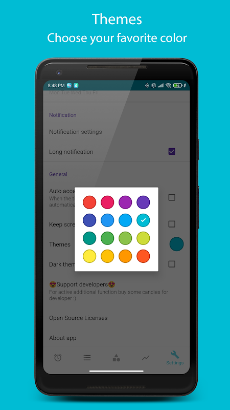 Một số nhà sản xuất điện thoại thông minh đang giới thiệu việc tối ưu hóa tích cực mức tiêu thụ pin, vì điều này, các ứng dụng phải hoạt động ở chế độ nền và gửi thông báo bị ảnh hưởng. Chúng tôi khuyên bạn nên tắt tính năng tối ưu hóa pin cho ứng dụng. Nếu bạn không nhận được thông báo hẹn giờ, vui lòng đọc bài viết - www.dontkillmyapp.com