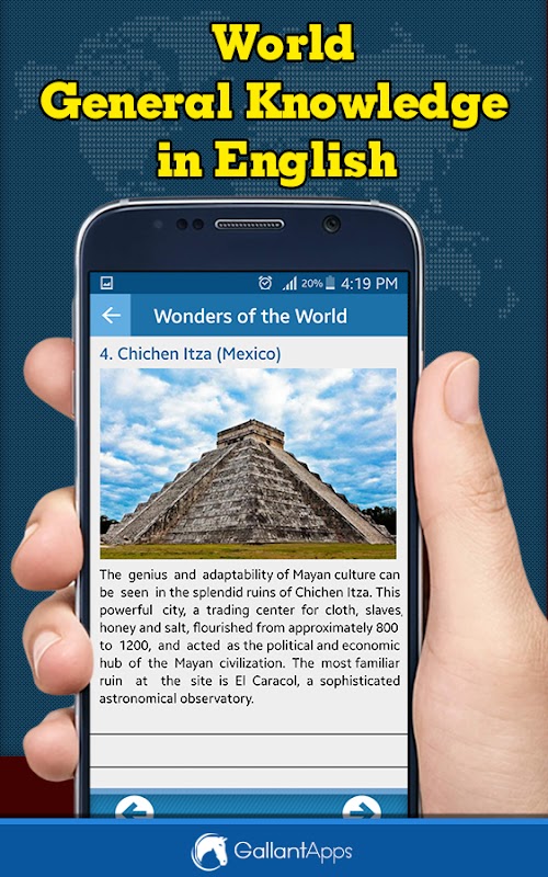 Ứng dụng Kiến thức chung thế giới (tiếng Anh) có Câu hỏi và Câu trả lời. Hơn 15.000 câu hỏi và câu trả lời GK được thêm vào trong các danh mục khác nhau. Và nhiều hơn nữa đến với các bản cập nhật trong tương lai.