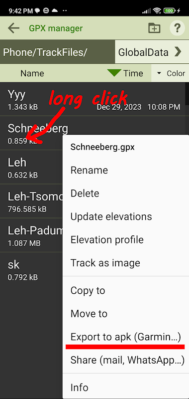 Ứng dụng chấp nhận định dạng GPX, được hỗ trợ bởi tất cả các cổng bản đồ web nổi tiếng. Nó có thể được sử dụng khi lập kế hoạch lộ trình cũng như xem lộ trình đã ghi lại. Ứng dụng có thể chia sẻ các tuyến đường đã đi trên các mạng xã hội như FB, Strava, v.v.