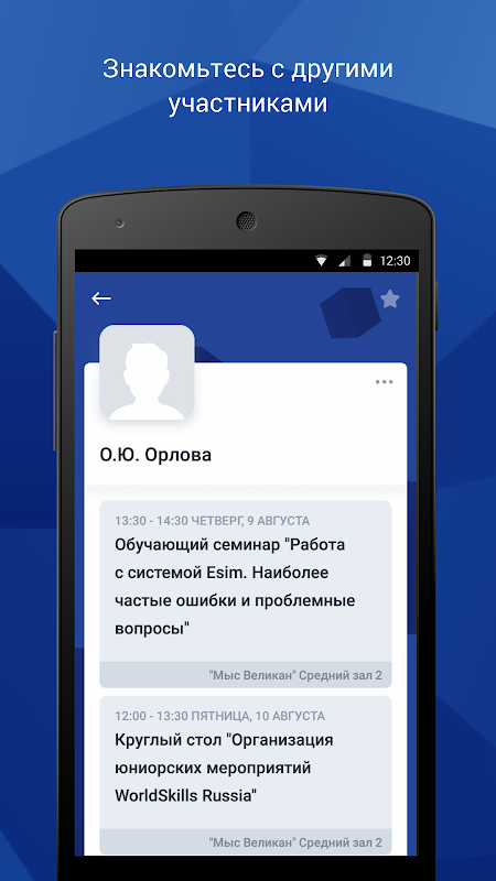 - составить собственную программу и получать оповещения о начале выбранных сессий деловой программы;