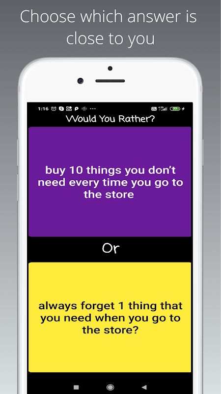 This app contains hundreds of the best hand-picked Would You Rather questions.