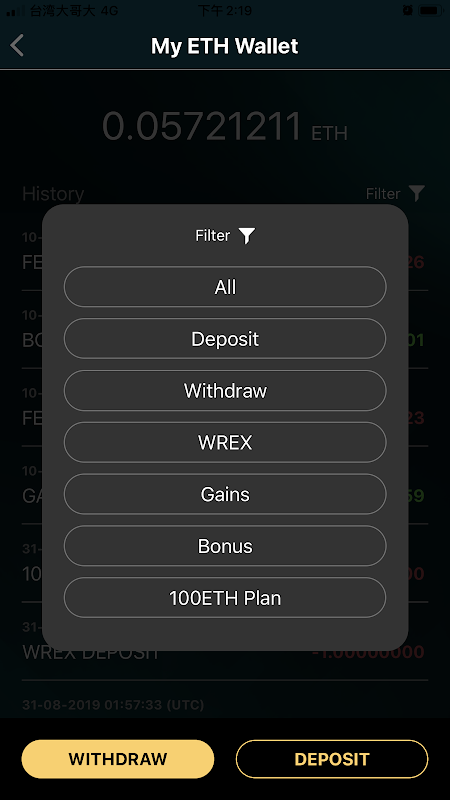 Once you complete registration and have minimum of 1 Ethereum in the WREX Account, you are now able to create up to ten 100 ETH PLAN.