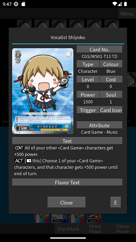 Nhà phát triển ứng dụng này không có bất kỳ liên kết nào với các nhà cung cấp nội dung có sẵn. Đây là một ứng dụng được phát triển cá nhân và không chính thức. Nội dung của ứng dụng này không được liên kết với, xác nhận, tài trợ hoặc phê duyệt cụ thể bởi bất kỳ công ty nào. Ứng dụng này chủ yếu là một dự án sở thích và dành riêng cho người hâm mộ và người chơi Weiss Schwarz.