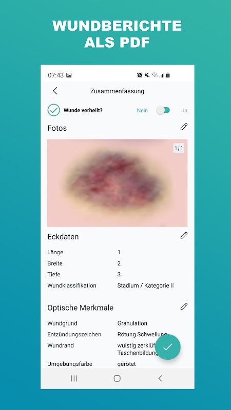 WUNDERA® là một ứng dụng di động và dễ sử dụng để ghi lại các vết thương mãn tính, giúp bạn ghi lại các vết thương mãn tính cho tài liệu của mình và MDK một cách nhanh chóng, dễ dàng và không phức tạp, đồng thời lưu và chuyển tiếp chúng theo GDPR.