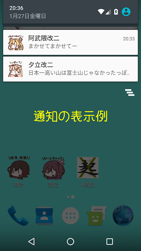 Android10の場合は再起動時に表示する通知をタップすると各アプリを起動します。