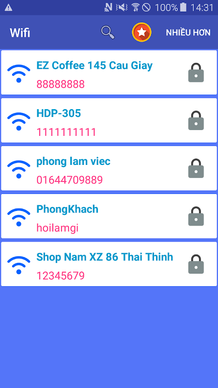 - Hiển thị danh sách các điểm truy cập Wifi mà thiết bị đã kết nối trước đó bao gồm tên điểm truy cập và mật khẩu.