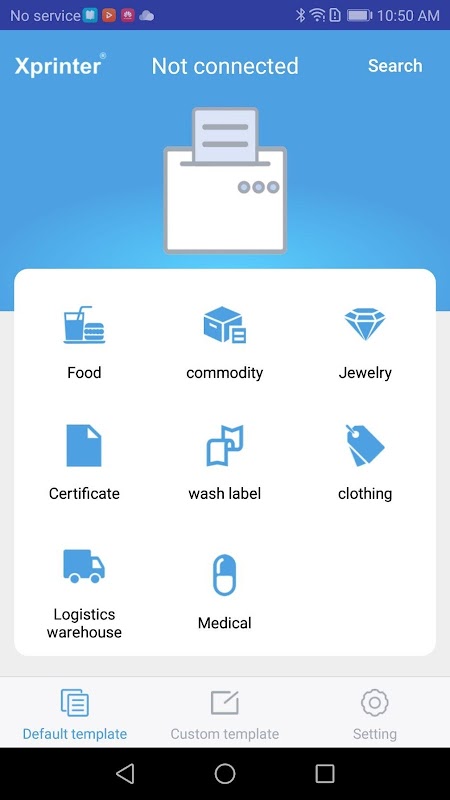 This software tool is the APP required for the printer to print under Android. Two templates, a fixed template and a custom template, are provided in the APP. The fixed template has a fixed print layout, and the user can edit the content, greatly reducing the user's operation. Custom templates provide user-defined layouts that provide user-editability. Users can edit text, barcodes and pictures by themselves.