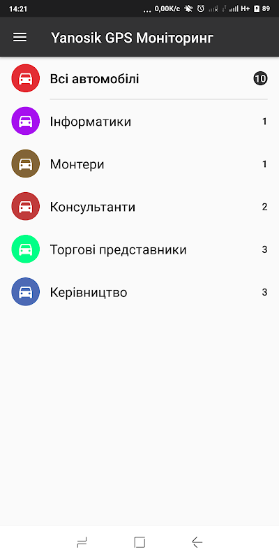 - моніторування актуального місцезнаходження фірмових чи приватних автомобілів на карті в режимі онлайн,