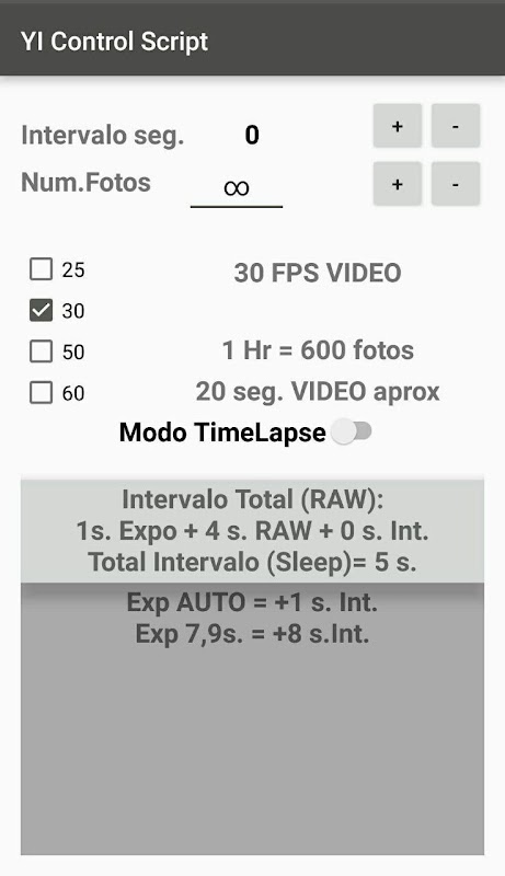 Script Generator cho Xiaomi Yi qua wifi ở Tây Ban Nha, tiếng Anh và tiếng khác