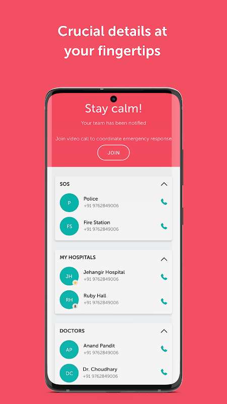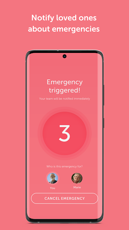 Thông báo cho những người thân yêu của bạn về trường hợp khẩn cấp chưa bao giờ dễ dàng hơn thế, một lần nhấn dài duy nhất sẽ thông báo cho người ứng cứu khẩn cấp của bạn rằng bạn đang ở trong một tình huống nguy hiểm và chia sẻ thông tin quan trọng với họ như vị trí trực tiếp, quyền truy cập vào phòng chiến tranh khẩn cấp, số SOS, hồ sơ được ủy quyền, và nhiều hơn nữa.