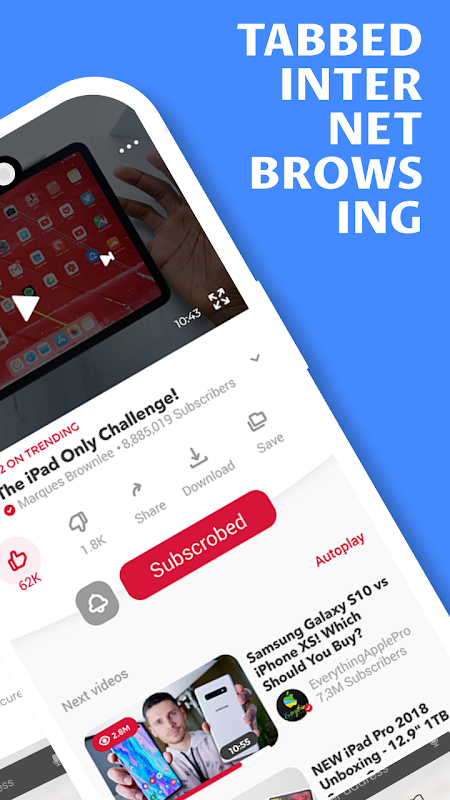 provides fast and secure web browsing with YoU Mini Browser an intuitive and easy to use interface. Its built-in ad blocker blocks🔒 annoying ads, pop-ups, and malware. It also has a smart download feature📥 which allows you to download multiple files in parallel and resume interrupted downloads U.C Browser. It has a secure connection feature which encrypts your data and keeps it safe from snoopers and hackers. It also provides anti-tracking features which XU Browser protect your privacy by blocking tracking cookies.