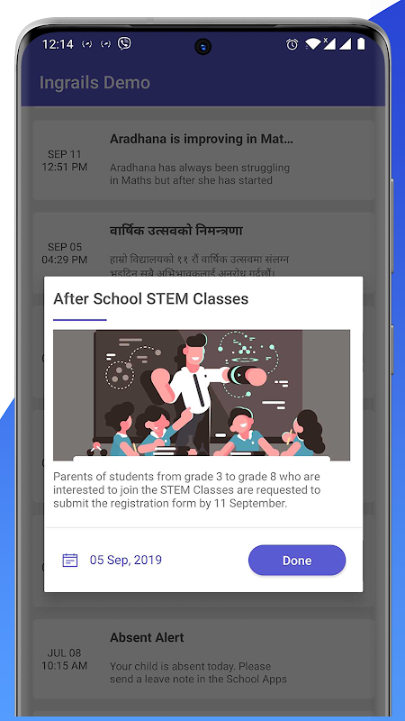 Lịch trường học/đại học để nhận thông tin về ngày học, ngày lễ, lễ kỷ niệm, kỳ thi, kỳ nghỉ và tất cả các ngày quan trọng.