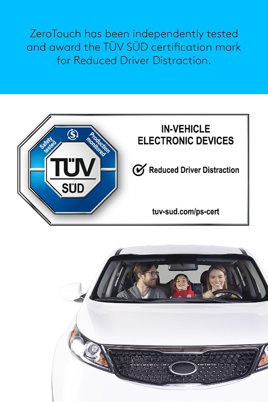 Research has shown that the combination of a car mount with a voice and gesture controlled app is the optimal design to help drivers keep their eyes on the road. This unique combination of app and mount also means you’re never out of touch, no matter how fast you’re moving. Designed to work exclusively with the mount, the app gives you hands-free control to text, make and receive calls, navigate roads, find destinations and reviews, and control music. ZeroTouch has been independently tested and award the TÜV SÜD certification mark for Reduced Driver Distraction*. For more information, visit www.tuv-sud.com.