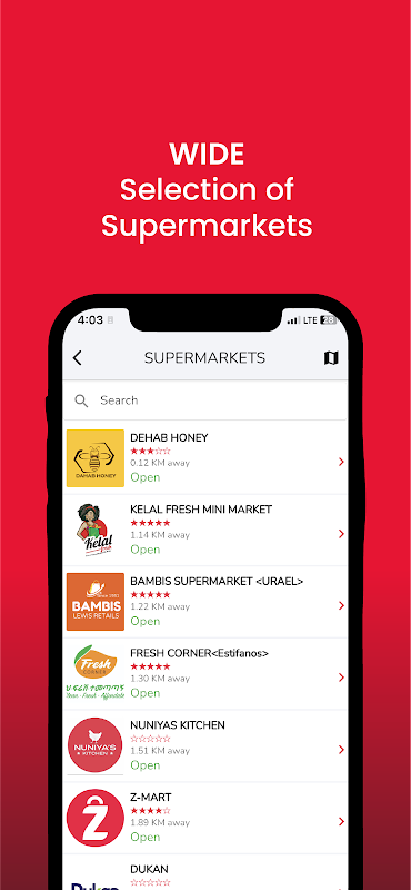 Duyệt các siêu thị gần đó và nhiều hơn như: siêu thị Shoa, siêu thị Abadir, siêu nhãn hiệu Bambis.