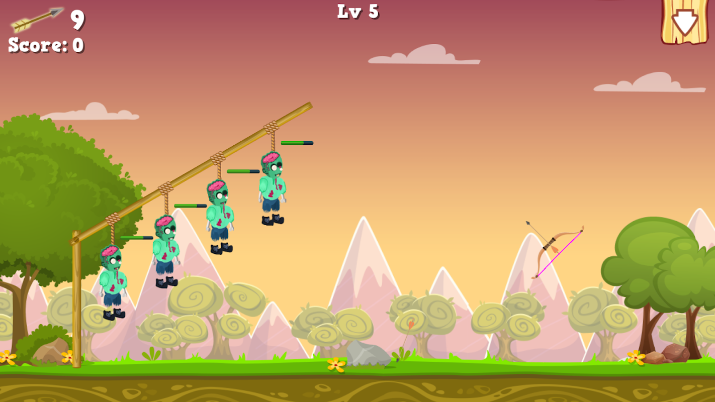 Aim your bow with limited arrows to shoot down the zombies from the hangman. Just make sure not to injure them too much :) :)