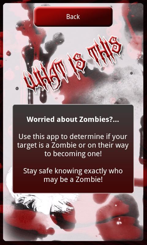 This app is perfect for tricking others into thinking that you can really determine who or what is a Zombie!
