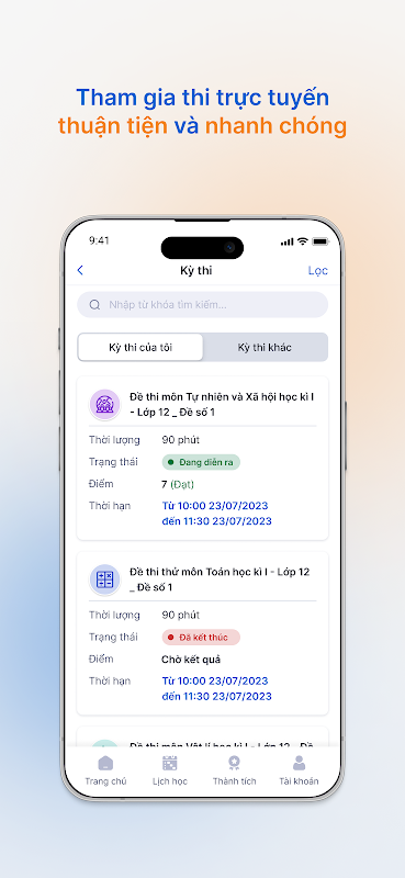 The application provides full functions of an online learning management system (LMS), scientifically and user-friendlyly designed. With vnEdu LMS, students can: