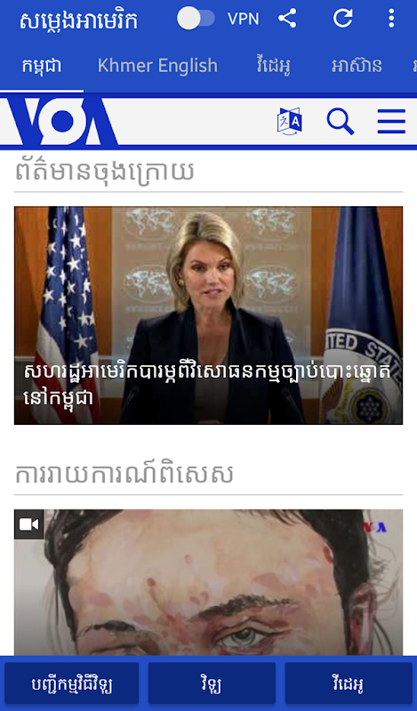 ព័ត៍មាន វីដេអូ និងការផ្សាយបន្តផ្ទាល់នៃប្រទេសកម្ពុជា និងពិភពលោកជាភាសាខ្មែរ ដោយទីភ្នាក់ងារព័ត៌មាន VOA។