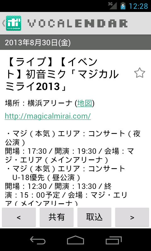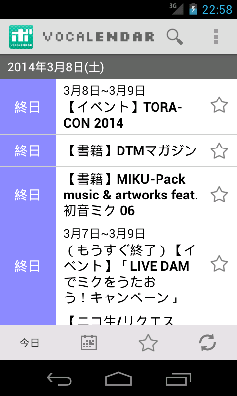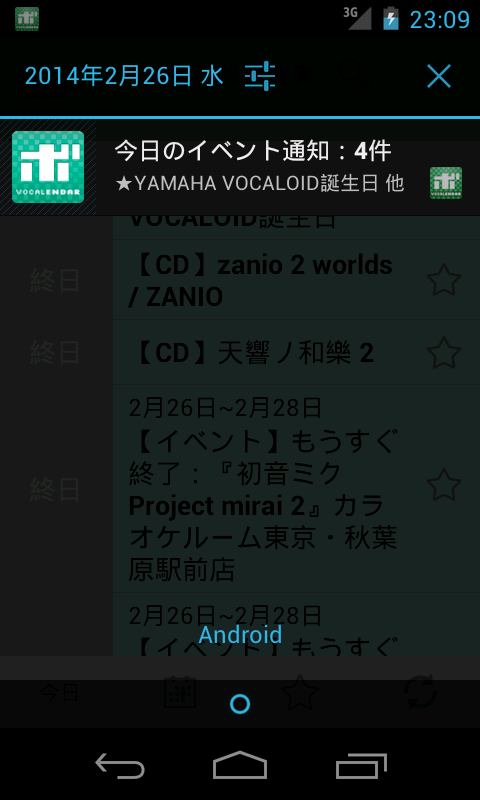 Calendar VOCALENDAR (vocalenda) official Android application that collected the scheduled date of vocaloid related events. With this app, you can quickly check vocaloid related events posted on VOCALENDAR.