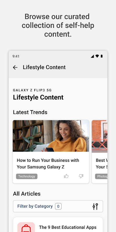 • Self-Help Center — Make the most of your mobile device experience with access to thousands of useful articles and guides, including device-specific how-to tips and tricks and step-by-step quick fixes to troubleshoot small challenges quickly and easily.