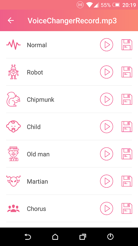 Application is designed to change your voice so easy and fun.