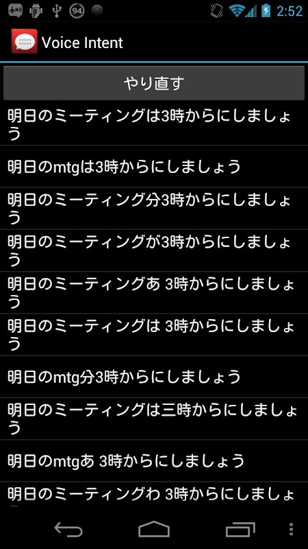 Then, the contents of the speech input candidates will be displayed in the list.