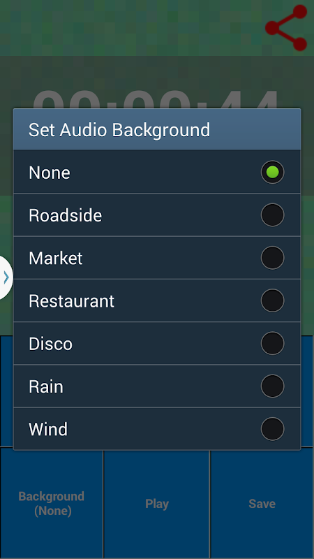 Apply Roadside, Market, Restaurant, Disco, Rain, Wind background noise to your voice