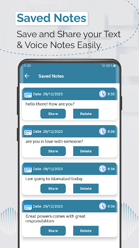 Now, you can easily change languages, making Speech Notepad a valuable tool for people communicating globally and those learning languages. The Transcribe Voice Notes feature in the Voice Notepad & Sticky Notes app lets you effortlessly turn long voice recordings into text. If you're doing interviews, recording lectures, or noting your own thoughts, Simple Notepad Transcribe Voice Notes makes sure your spoken words become readable with just a few taps.