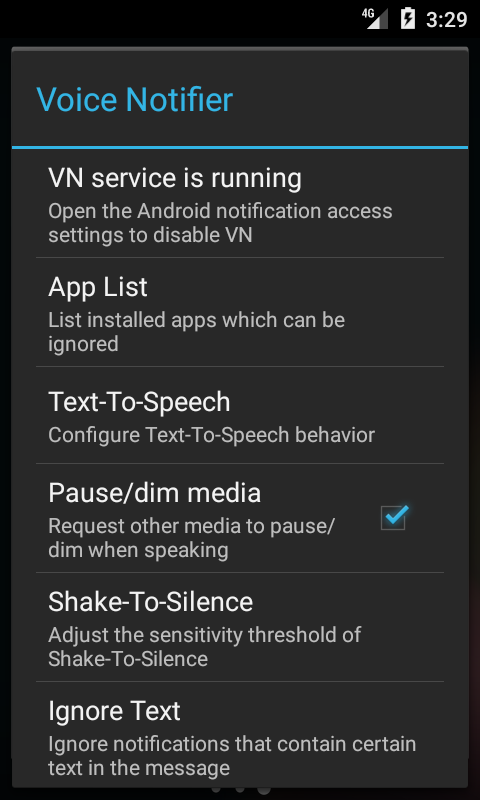 Voice Notifier announces the status bar notification messages using Text-To-Speech (TTS), allowing you to know what a notification says without looking at the screen.
