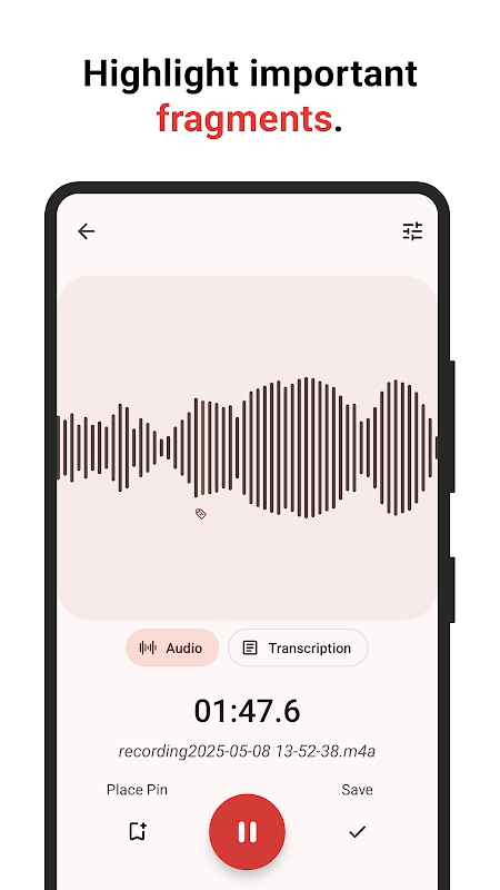 Group all your vocal recordings into defined categories. Mark your favourite talks and memos. Place recording tags, attach bookmarks, choose colors and icons. Achieve clear and sharp sound.
