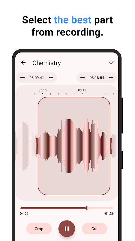 Select the best part from the recording then trim and cut the desired part of the audio for using in Ringtone, Notification tones, Alarm tones. Application is designed to make audio records editing so easy and fun.