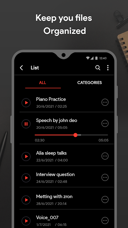 A Voice recorder can help you in many ways; you can record audio and conversations by recording memories. Thus your phone can be used as a phone recorder, dictaphone, podcast, or smart music recorder.