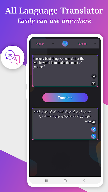 Voice, Camera, Text, Chat etc.. All in one language translator super fast