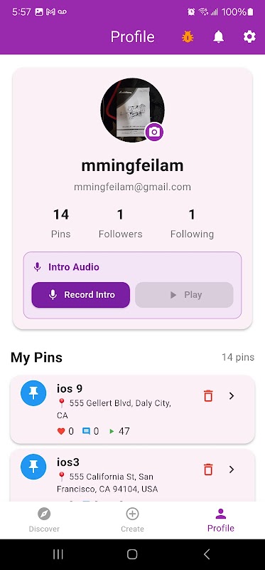 Follow users, like pins, comment, and build a network of audio storytellers.