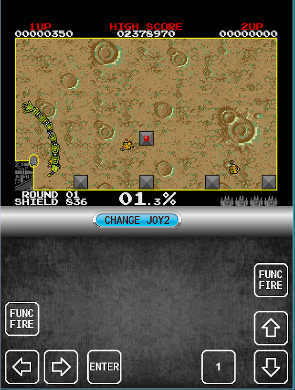 Taking place in another galaxy, a space pilot is returning to his home world of Volfied, only to discover that it is under attack by an unknown alien force. The few remaining Volfied inhabitants are in an underground location of the planet and signal the pilot to their aid. The pilot flies to Volfied using his ship's defensive weapons in order to eliminate the alien threat and save his people.