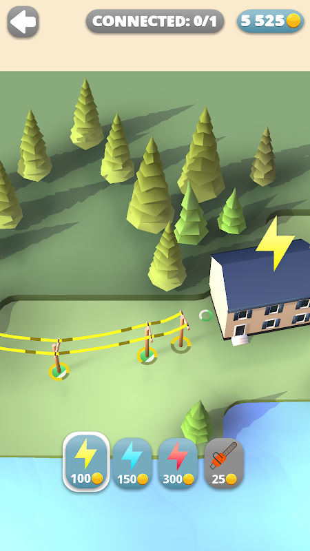 Game features: Construct the awesome power lines. Connect the different buildings and houses and see how it becomes alive. Beautiful low poly graphics. Easy and intuitive controls.