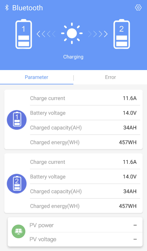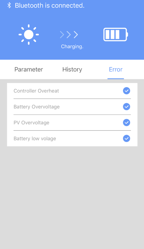 All important data of your Voltima solar charge controller on your smartphone!