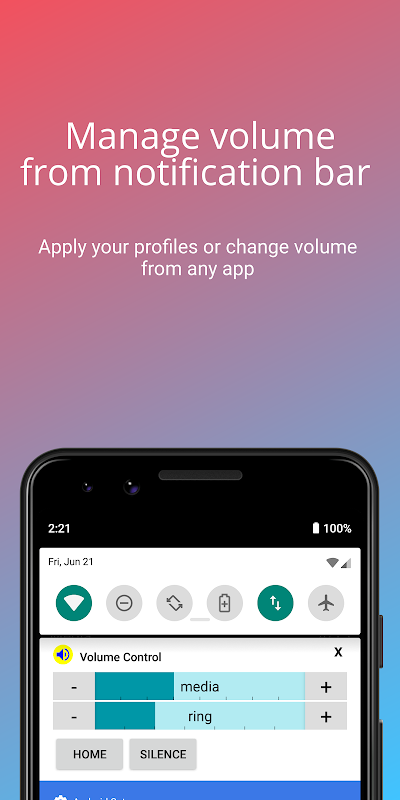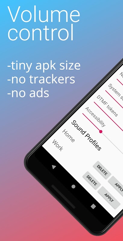 Lightweight volume control app with notification widget and custom profiles.