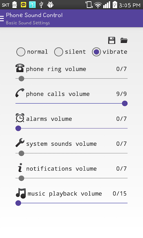 - Adjust the volume of each of the basic sounds (ringtones, phone call, alarm, system, notifications, media).