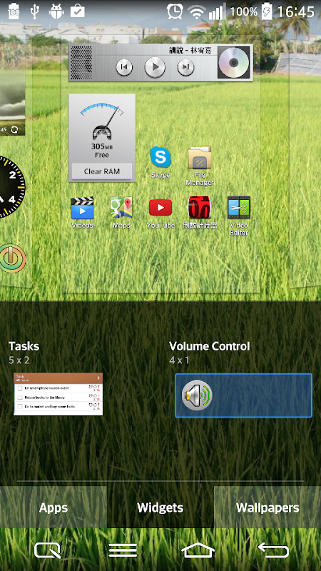 The volume control is widget can control music, ring, notification, system.