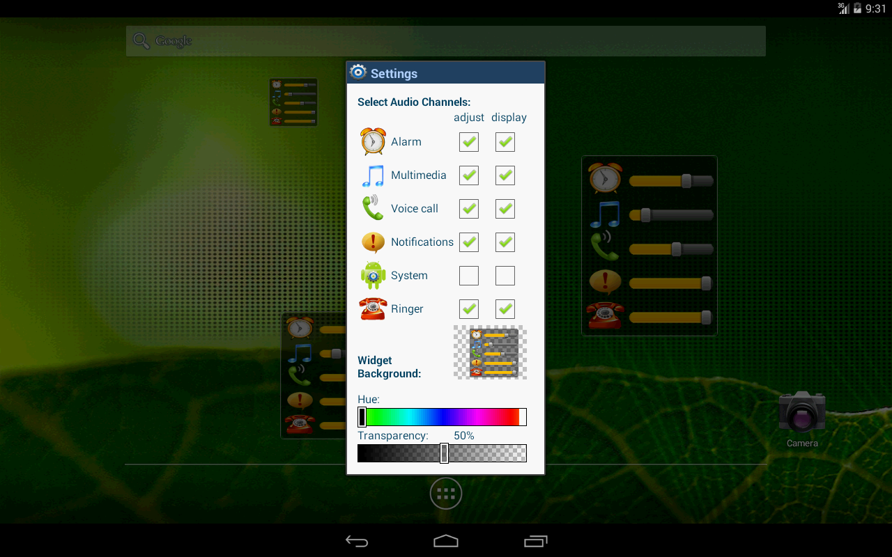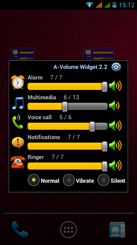 Click on the Widget and set the volume level of any channel(s) in one touch! Vibrate mode setting supported. Quick open, set and close.