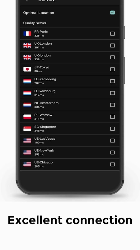 We have built a global VPN network included America, Europe and Asia, and expand to more country soon. Most servers are to use, you can click the flag and change server as any times as you want.