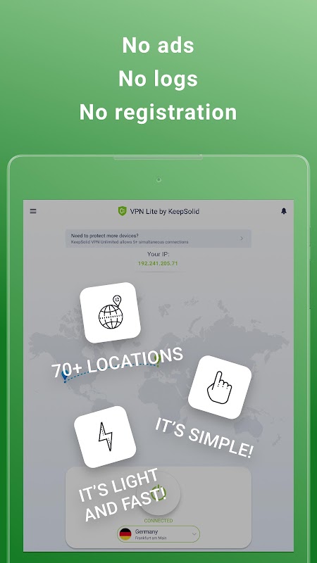 Free and quick download, no ads, simple interface, smooth and seamless performance - what’s not to like about KeepSolid’s VPN for Android users? :)