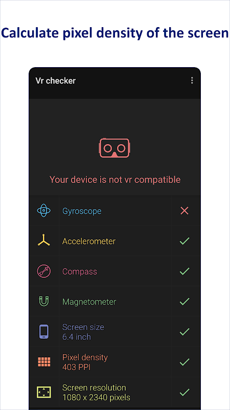 ✔ Simple and fast check if your phone or tablet is VR compatible