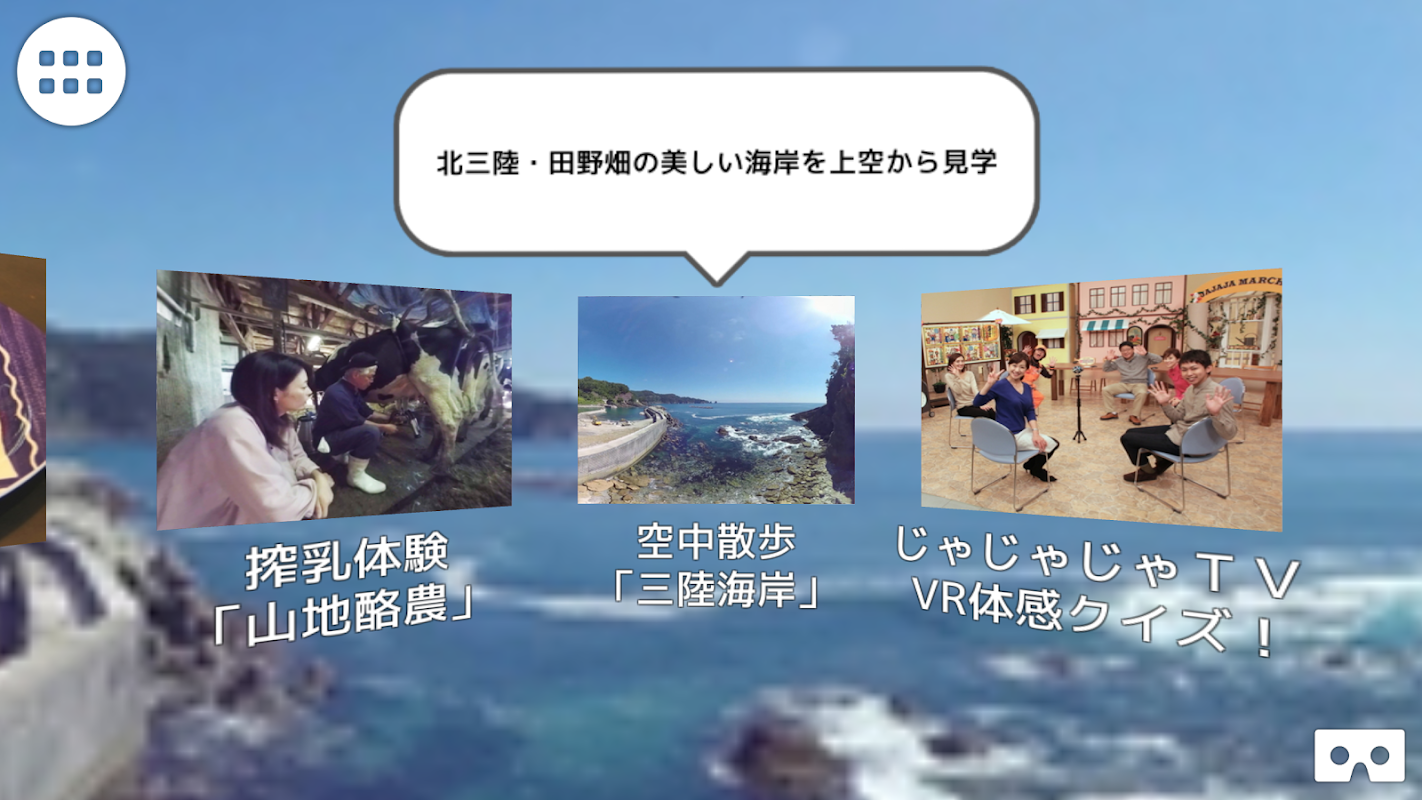 *12歳以下のお子様が本アプリを視聴する場合には、健康上の理由からVRゴーグルを使用せず、スマートフォン単体(一眼モード)でお楽しみください。