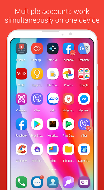 • Two accounts are online simultaneously and can be accessed from the same device. User can switch between two apps quickly and smoothly.
