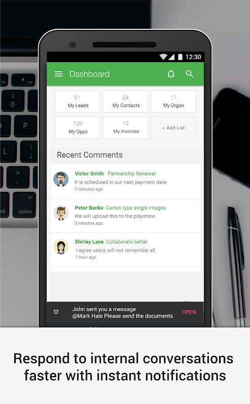 Vtiger CRM Mobile for Android puts your customer data in your pocket! Access and update your contact data, sales pipeline, projects or support data on the fly, right from your Android phone.