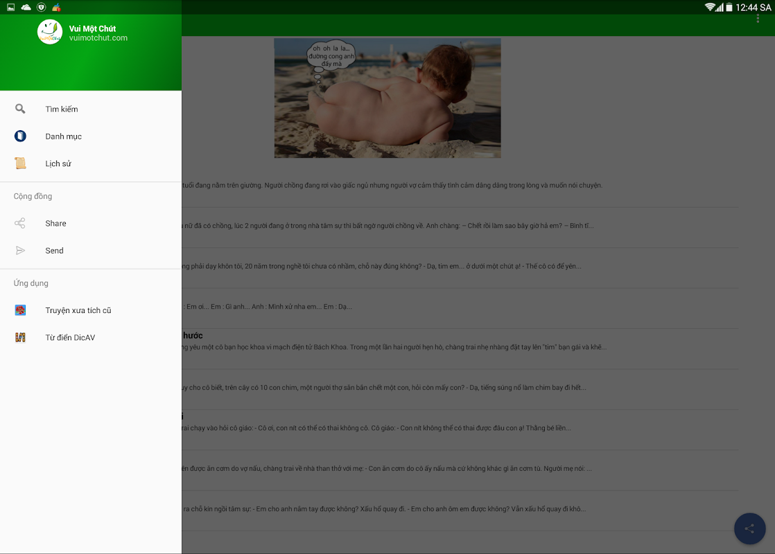 Phần mềm là sự chọn lọc những truyện cười, truyện tiếu lâm dân gian hay nhất việt nam và thế giới, những thể loại cười lăn lộn bò càng, cười kiểu vova, cười người lớn trẻ nhỏ, hoặc những thể loại truyện chế buồn cười, thể loại tế cười 18+ tế nhị, truyện vova.