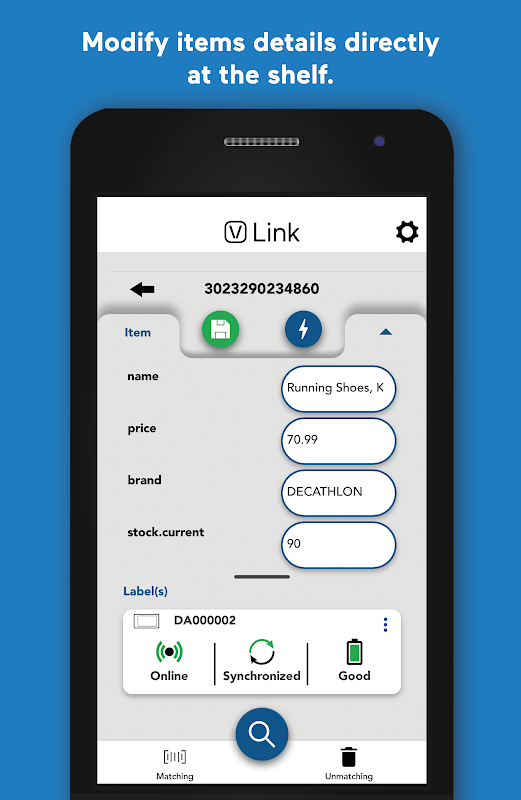 Look for your product in the store and find them easily thanks to the label flash. Change your items details and prices in real-time and increase your customer satisfaction with always up-to-date product information.